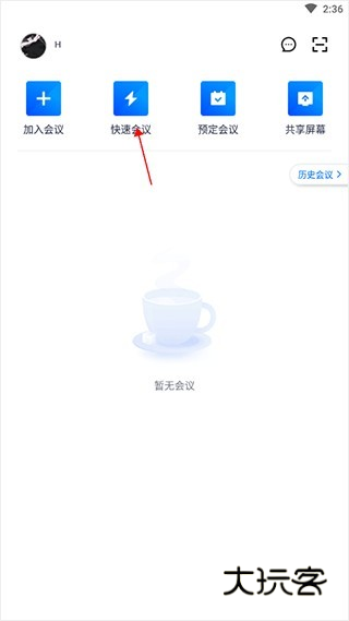 1、打开腾讯会议,点击主界面的“快速会议”选项。