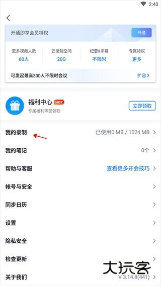 3、当录制完成后,查看回放,点击左上角个人头像。