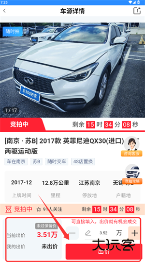 3、在拍卖界面浏览心仪车型,提交个人出价金额,点击竞拍按钮完成出价。