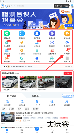 2、成功登录后进入主页面,在功能列表中选取“车辆拍卖”入口进行点击。