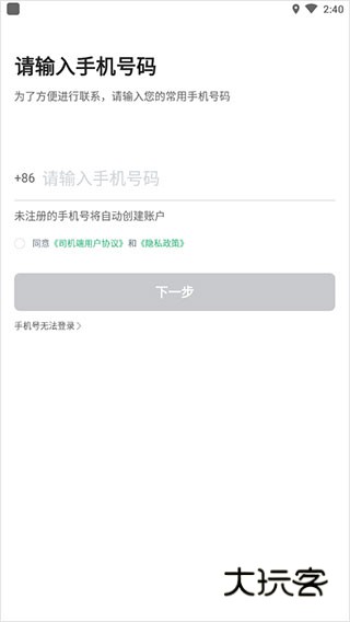 1、首先打开aa出行车主端,输入手机号进行登录;