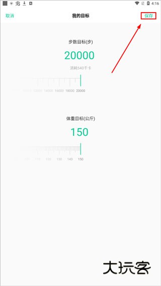2、修改自己想要达到的目标步数和体重,再点击保存即可。