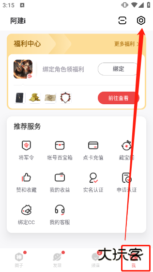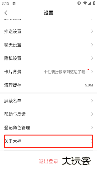 1、打开手机上的网易大神,点击右下角的我,然后点击下图所示设置。
