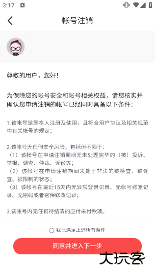 4、之后根据官方引导流程操作,即可注销网易大神账号