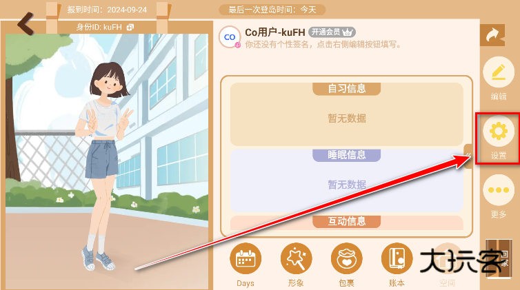 在个人中心页面,找到并点击 “设置” 按钮(通常显示为齿轮图标或“设置”文字)。