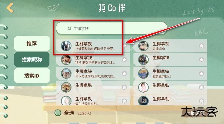 3.输入好友昵称或者id,点击搜索,然后找到并点击相对应的好友图像进入。
