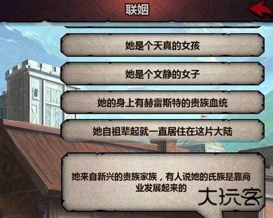 在这里建议大家提高自己声望之后在城堡大厅寻找结婚对象,因为结婚这种东西,不管是游戏里还是现实神话中都需要谨慎。在游戏中,如果角色特性很差的话,搞不好就会遗传上好几代!