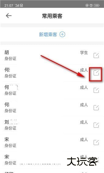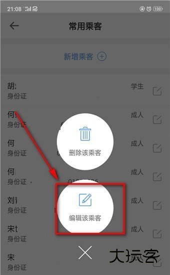 4、找到你要抢票人的名字,点击后方的【编辑】,选择【编辑该乘客】;