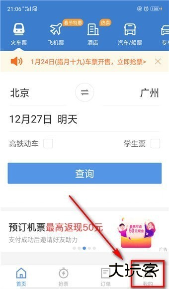 1、在智行火车票上抢学生票只需确认乘客类型是【学生】即可,打开【智行火车票】,点击【我的】;