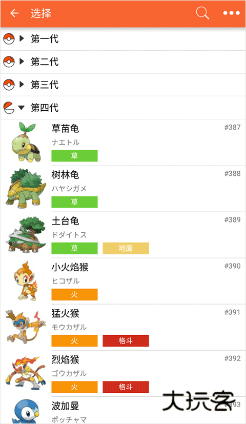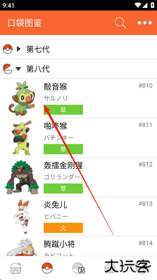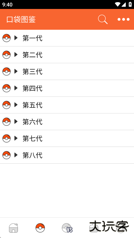 1、打开口袋妖怪图鉴App,点击你想要查看的历代精灵