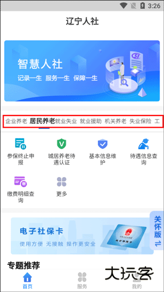 3、社保卡服务社保卡挂失、制卡进度查询、制卡网点查询。