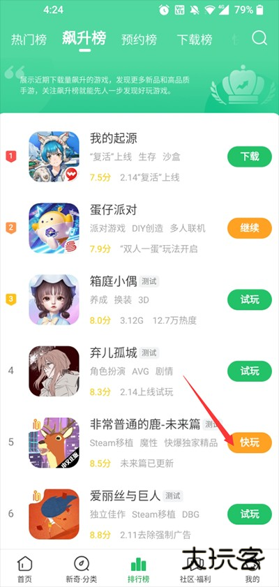 1、找到想要玩的游戏,点击右边的“快玩”按钮。