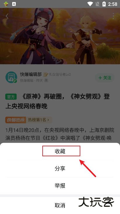 4、系统弹出收藏成功的提示,即可把帖子加入收藏夹。