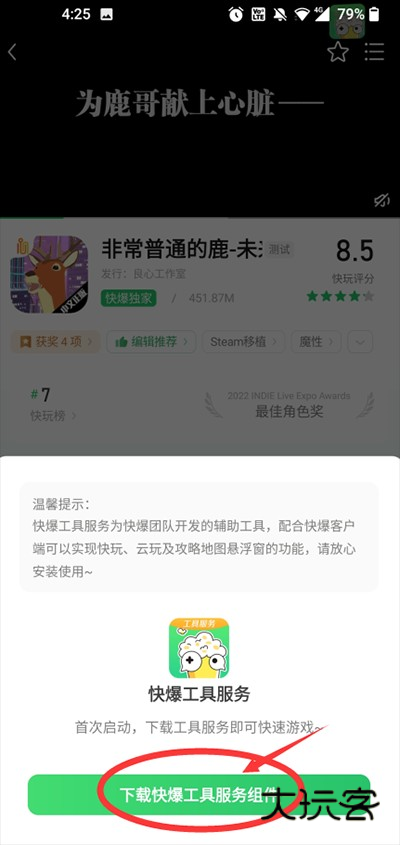 3、接下来由于是首次玩游戏,可能是需要下载快爆工具服务组件。