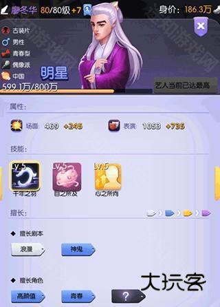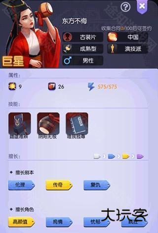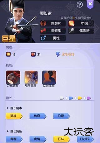 身为一张可以在“钻石星探”可以抽到的巨星,获取难度会相对比较低一点,该艺人擅长角色与剧本比较偏,一般在现代与古装偏兼容率会较高一点。