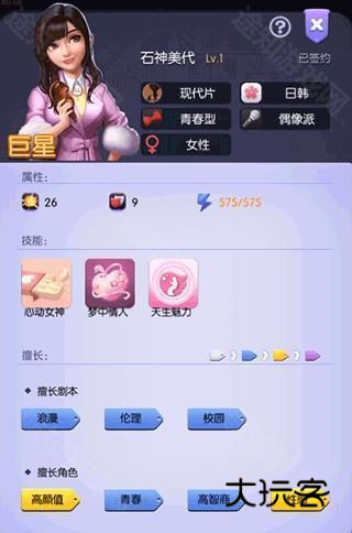 2、为角色匹配合适艺人为其规划演艺路线,安排培训课程与工作行程。