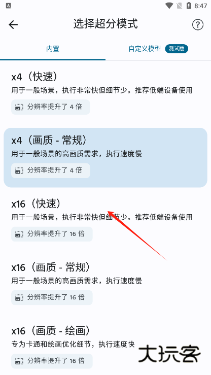 3.你可以x4(快速)、x4(画质-常规)、x16(快速)、x16(画质-常规)、x16(画质-绘画)中自由切换。