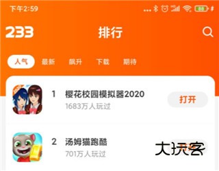 排行榜主要分为人气、最新、飙升、下载和期待榜,可以轻松找到近期热门游戏,或者预约即将上线的新游戏。