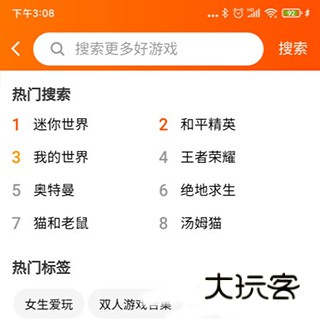 2、然后点击里面的搜索,我们可以直接搜索游戏,或者输入热门的标签;