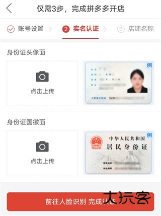 5、完成身份证正反面上传,人脸识别,即可创建店铺名称,然后就可以使用密码和登录账号登录,修改店铺资料,恭喜你入驻成功,早日大卖。
