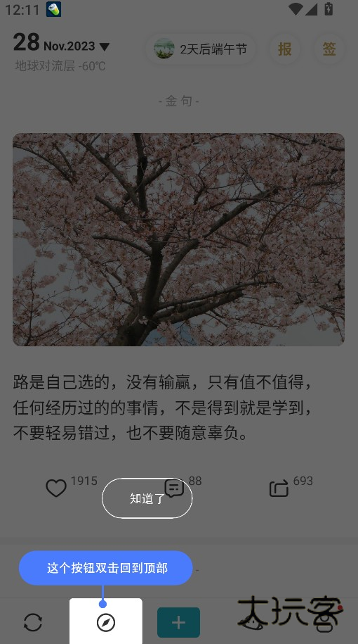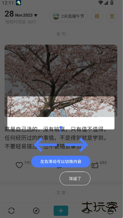 1、点击界面左下角的按钮,可以随机刷新当前页面内容,系统将自动推荐新的语录或短文,带来持续不断的阅读惊喜。