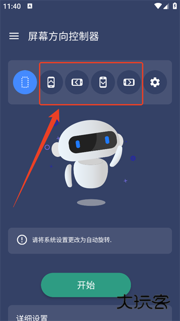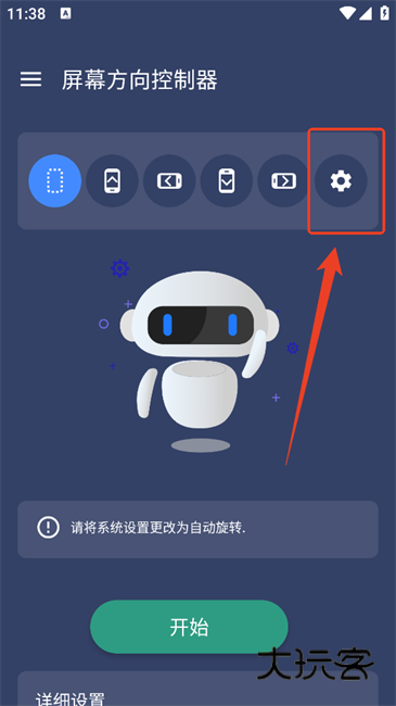 1、进入屏幕方向控制器app后先点击齿轮设置标识