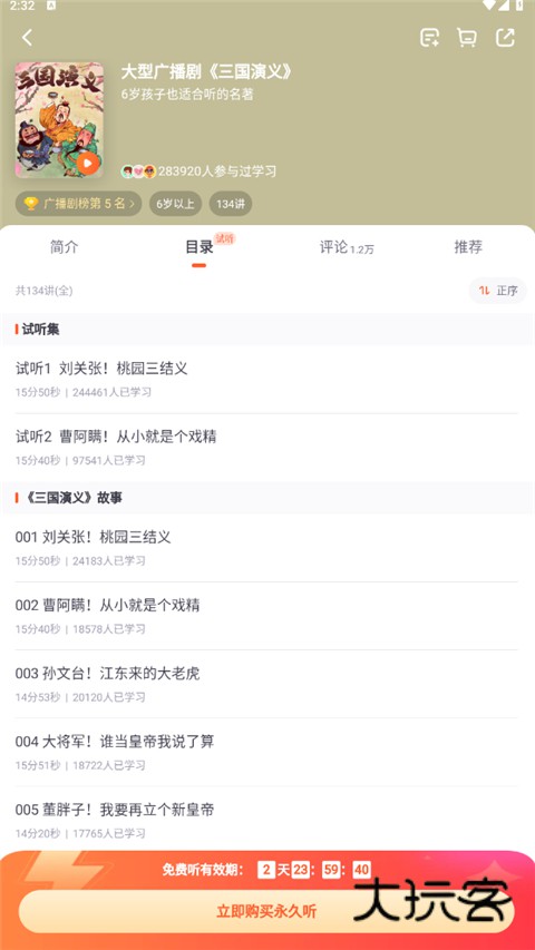 4、添加好课程后,前往书房已购板块即可进行免费听