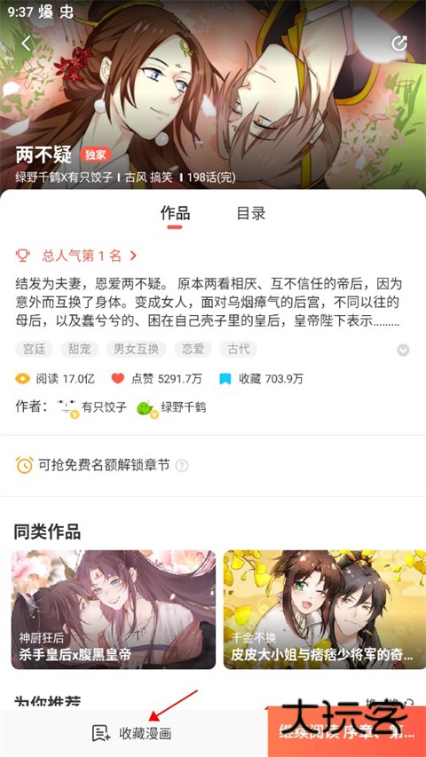 3、然后点击收藏漫画选项。