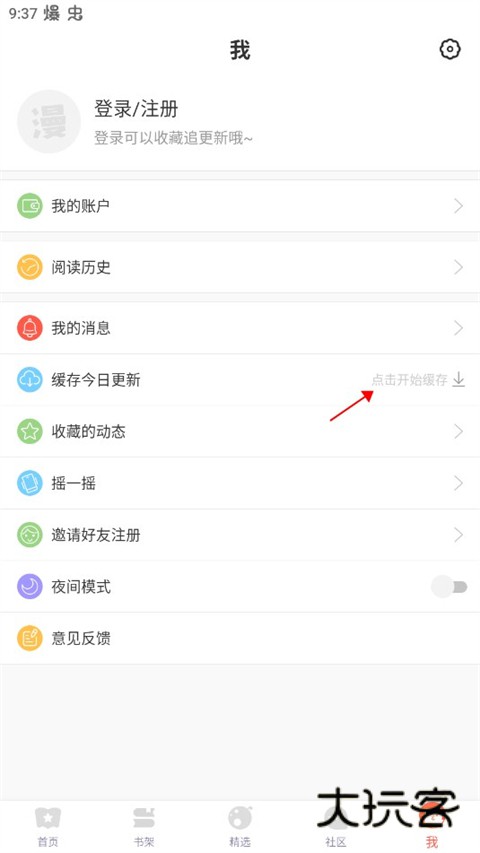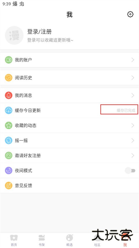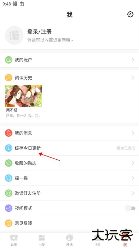 4、收藏完成之后来到我的界面,点击缓存今日更新。