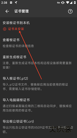 8、另外如果用户不想远程安装证书,也可以导入手机本地或电脑上的证书进行安装,但导入前仍然需要对手机设备进行root