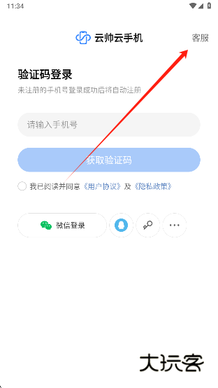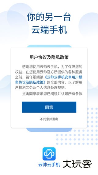 1、下载安装云帅云手机,然后打开,点击同意;