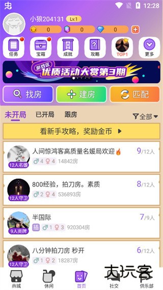 3、首页可直接进入房间,随机匹配或者是自己建房也行;