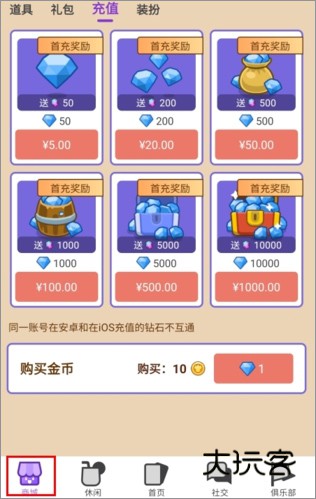 游戏中有很多的道具礼包,需要用户们充值才可以购买使用。