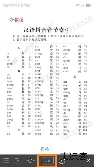 3、自由的翻,然后到您想查的音节处,点按互为照应的字,就可到呈入的那页,很易翻查。