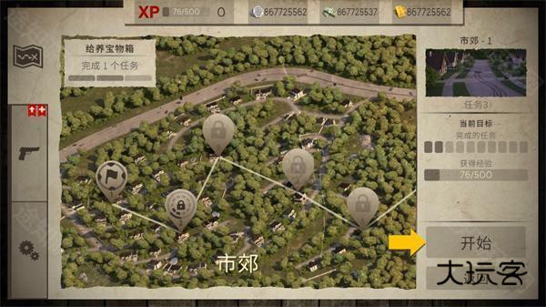 5、然后选择关卡,这里需要完成一个任务,给养宝物箱,然后点击开始;