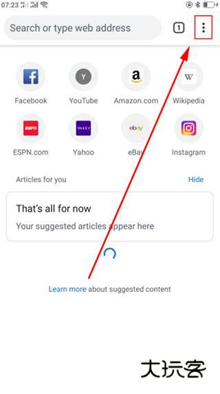 1、打开手机谷歌浏览器,点击右上角的菜单按钮