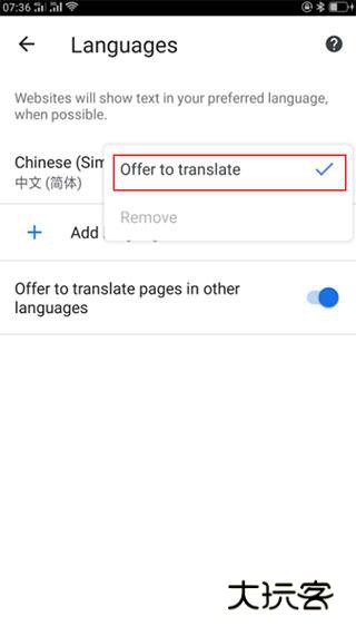 7、在弹出的菜单选项中选择offer to translate功能,这样手机浏览器就显示为中文了