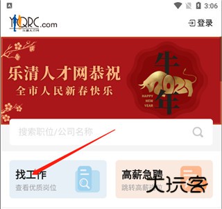 1、打开乐清人才网app,如果想要找工作的话,可以直接点击找工作;