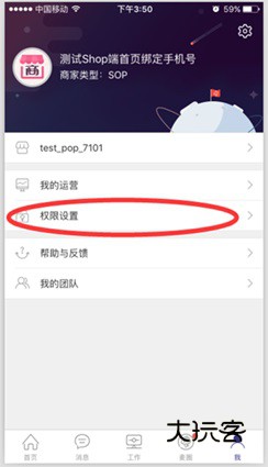 1、登录京麦移动端后,选择“我-权限管理”。 注:该功能只有主账号可以设置,主账号默认有京麦全部权限。