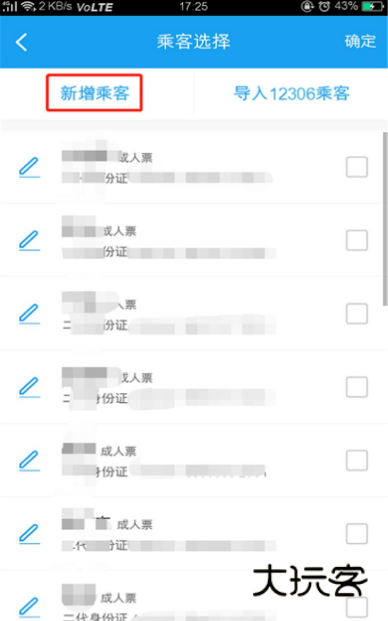 添加乘客也可以在买票的时候添加。