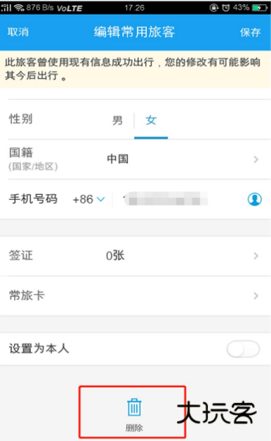 5、点击该乘坐人旁边的“编辑”或“删除”按钮。