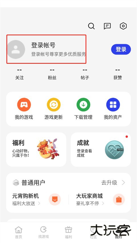 5、返回我的界面,点击登录账号将新的账号登录即可。