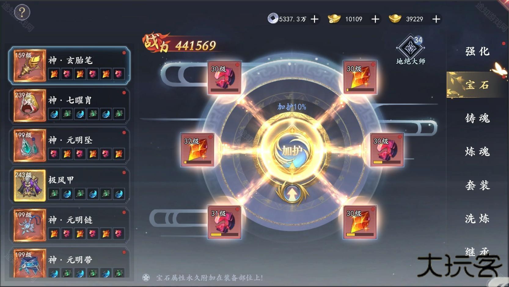 宝石是最直接的战力跃升方式。宝石孔位随等级开放,宝石可通过挖宝图、活动商城或商店购买获得。