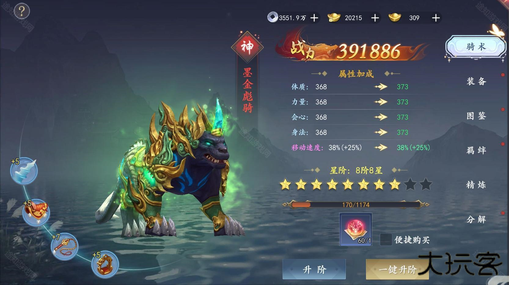 升级骑术可以提高坐骑附加给角色的属性,同时可以提高坐骑的移动速度