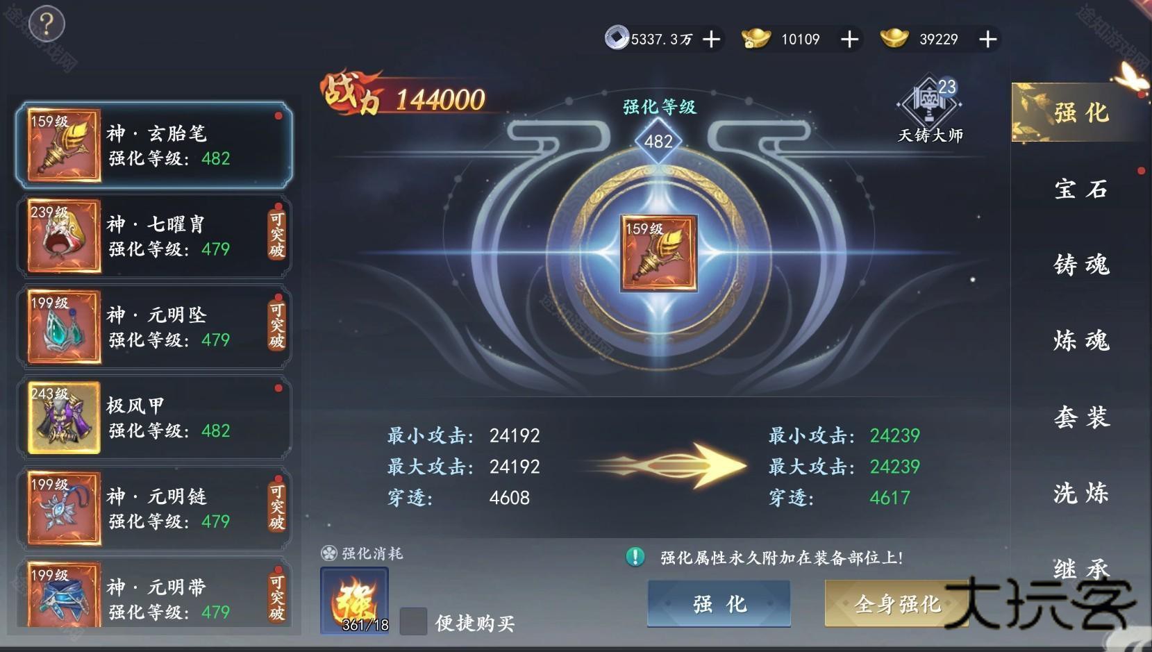 小技巧:前期别盲目“一键强化”,可以优先强化与洗练解锁相关部位,这样能比别人更快拉开战力差距!(欧皇请随意~)