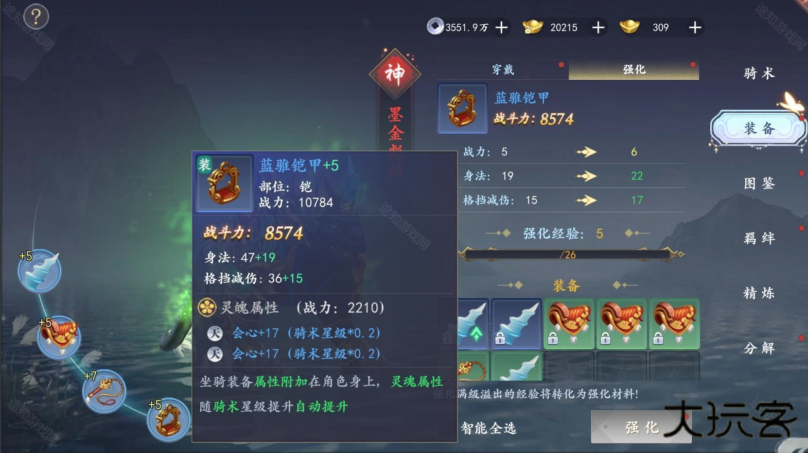 强化不仅能提升装备属性,还能激活套装效果、洗练功能以及部分时装外观进阶。