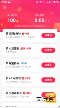 如果你是新用户刚注册,那么你获得的金币奖励将会比老用户更多,首次观看5分中视频可以直接获得1元红包,观看视频后还可以获得2~30不等的金币奖励;