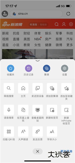 比如下图一中的收藏夹、历史记录等,此外网上滑动还可以看到更加全面的工具,其中就有“大声朗读”这一项;
