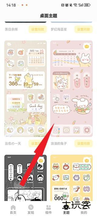 1、用户首先点击主题,在主题页面选择自己喜欢的主题壁纸。