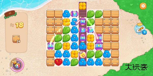 4、神秘箱子:神秘箱子里藏着一些道具或者收集目标,消除箱子附近的花朵可以打开箱子